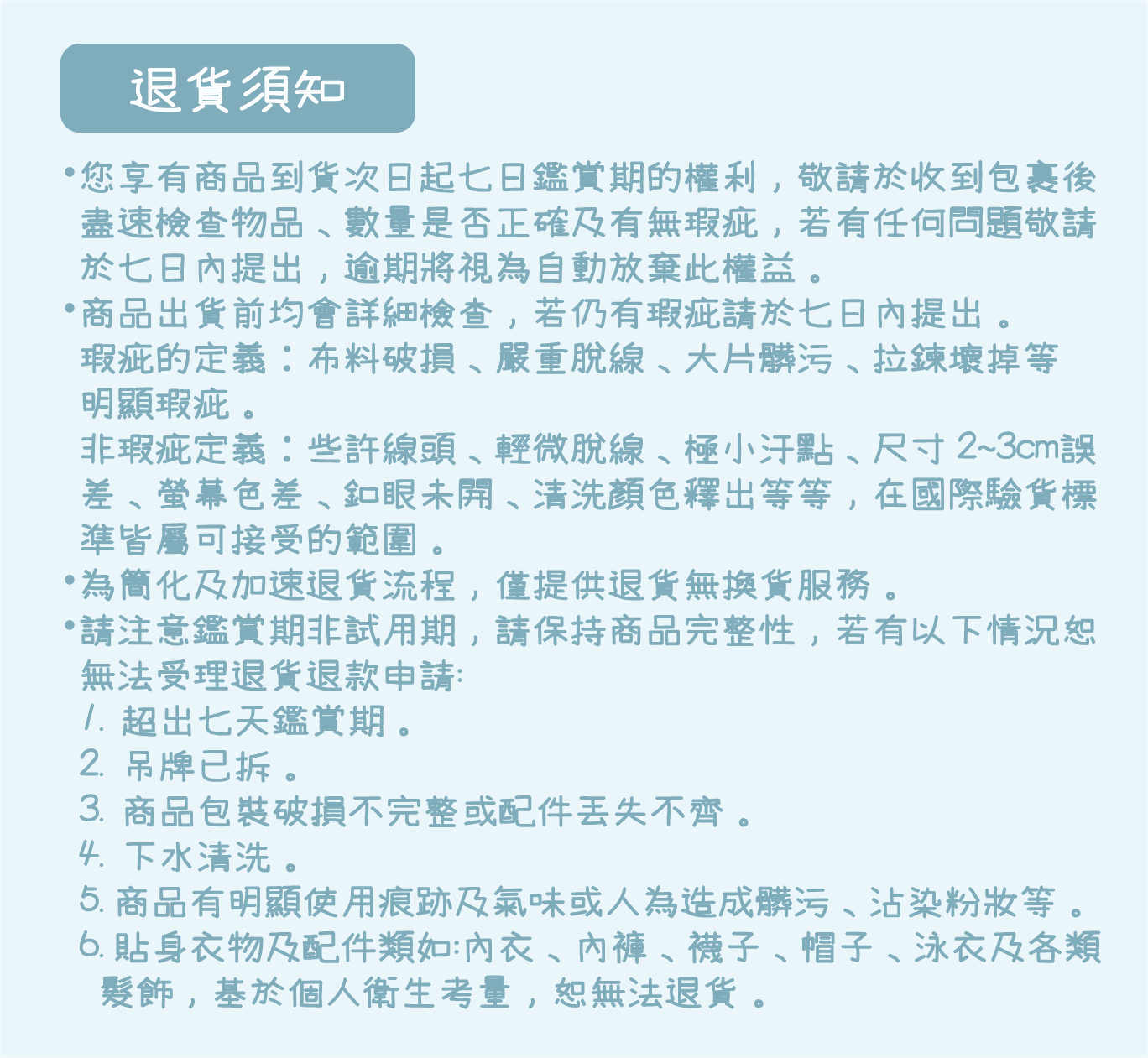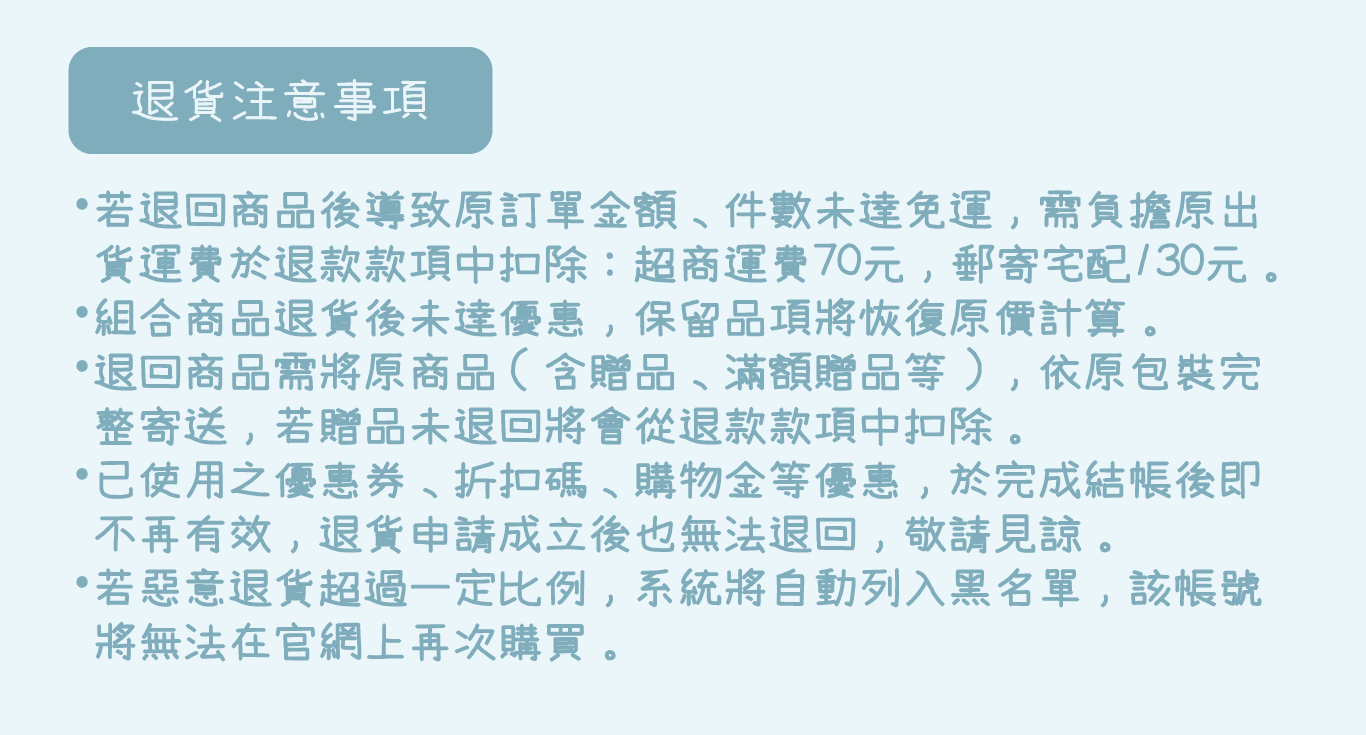 • 退貨須知