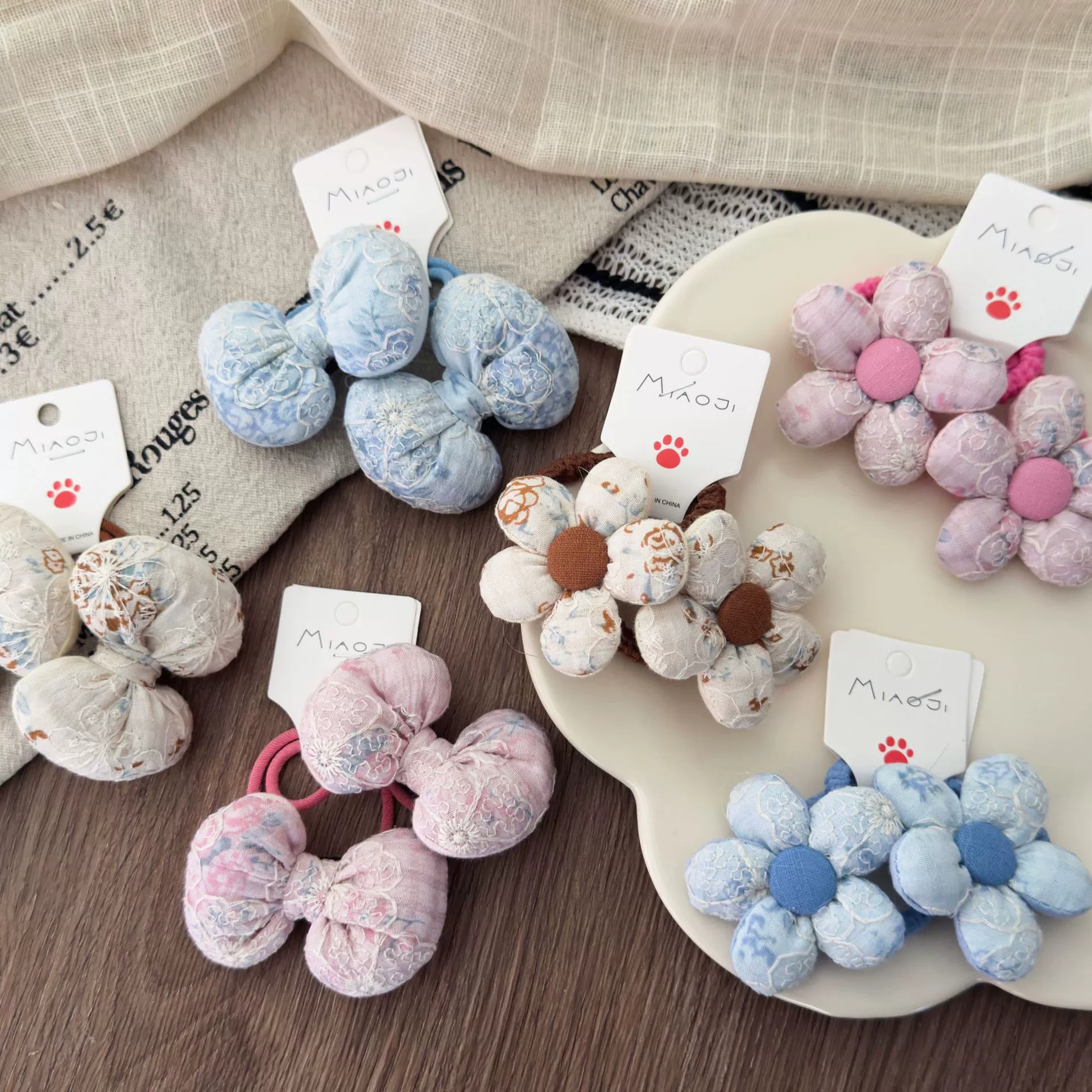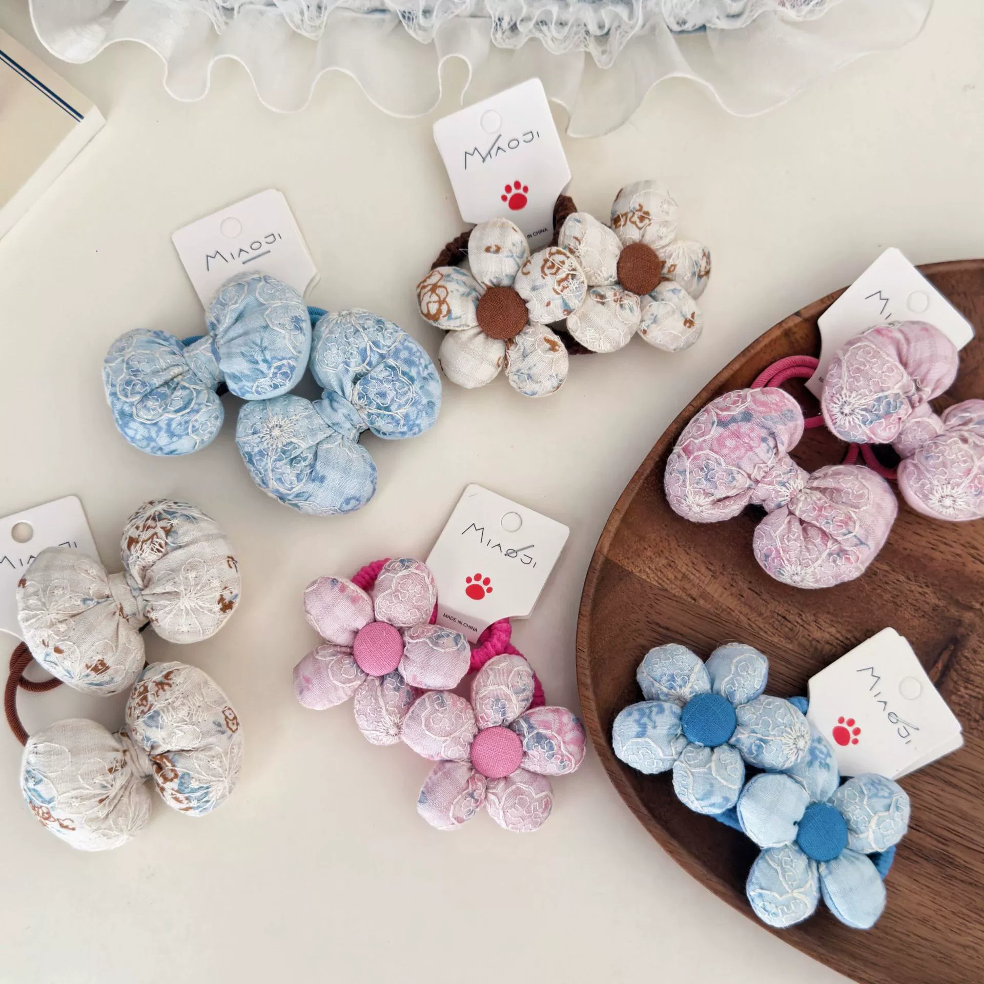 藍蝴蝶結 粉蝴蝶結 米蝴蝶結 藍花朵 米花朵 粉花朵