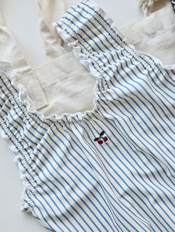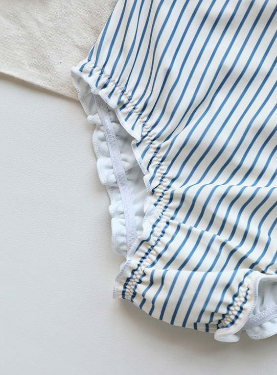 女童條紋連身泳衣含帽