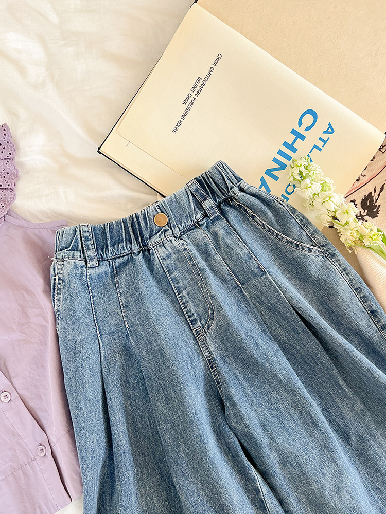 氣質拼接寬鬆牛仔褲