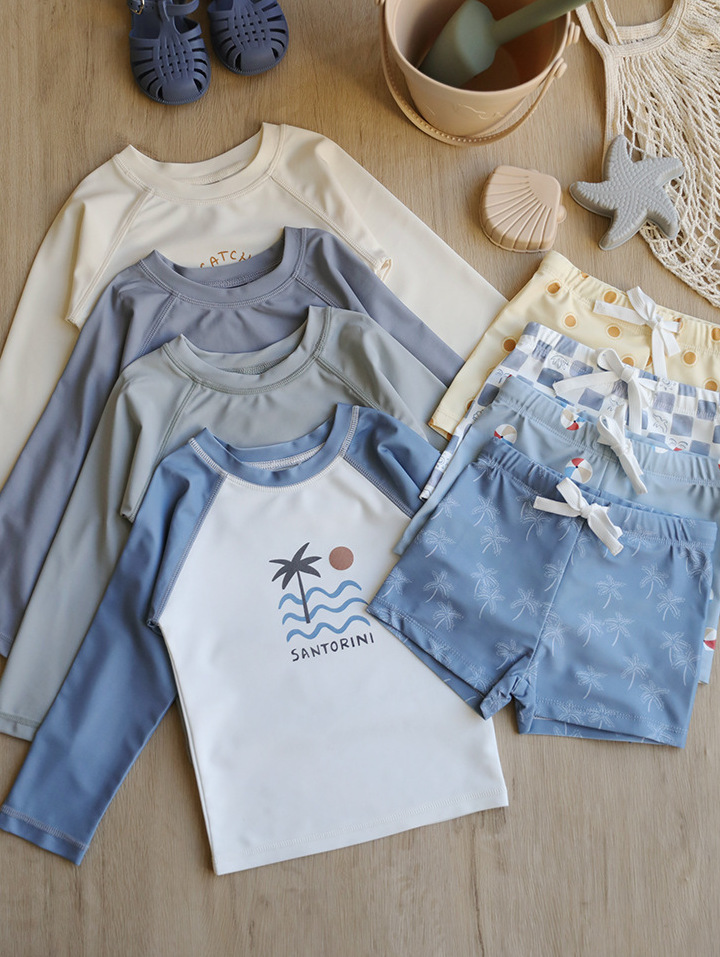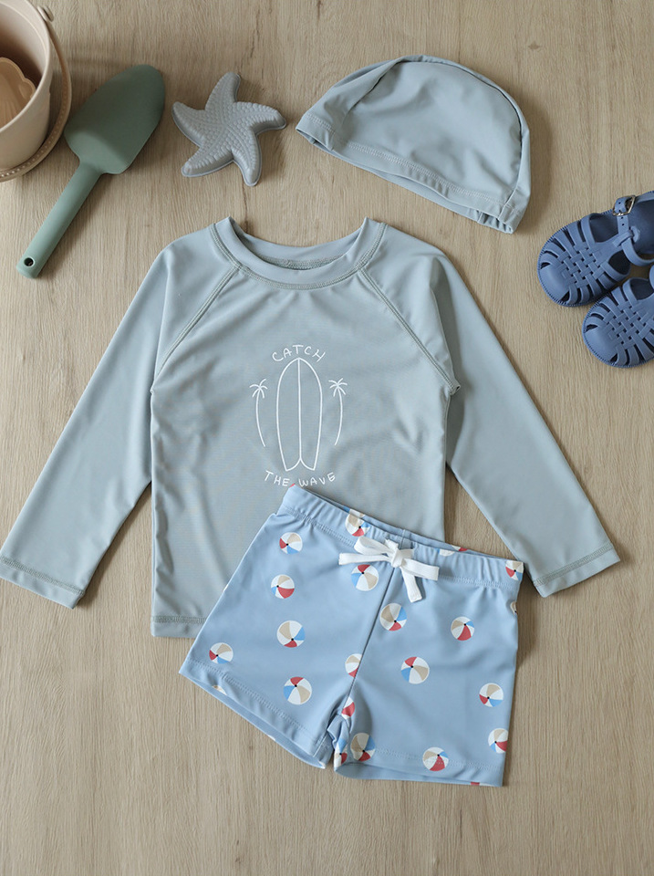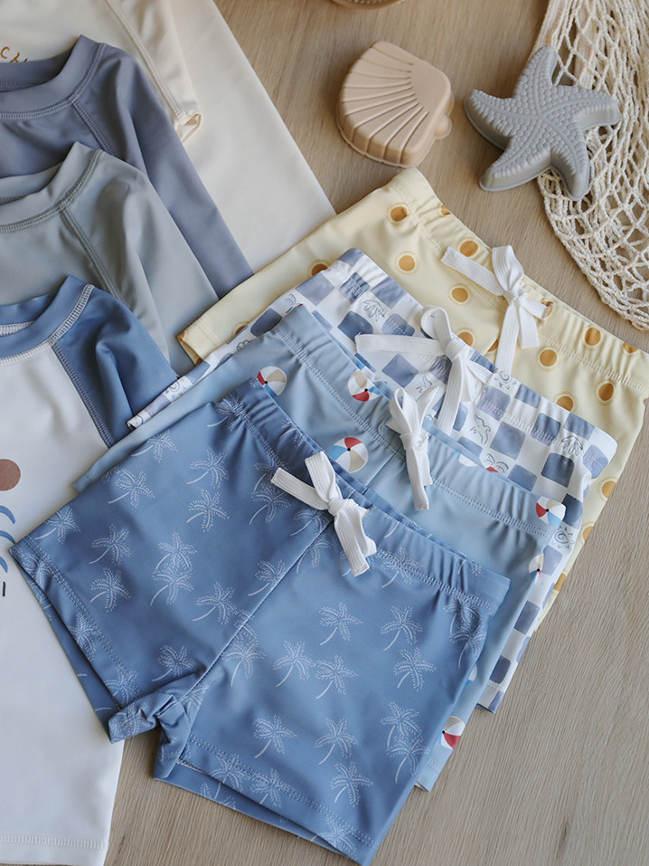 灰藍椰子樹 藍皮球 藍方格 黃圓點