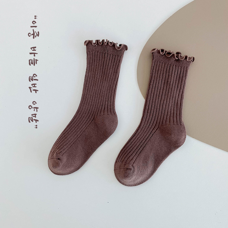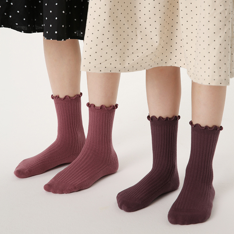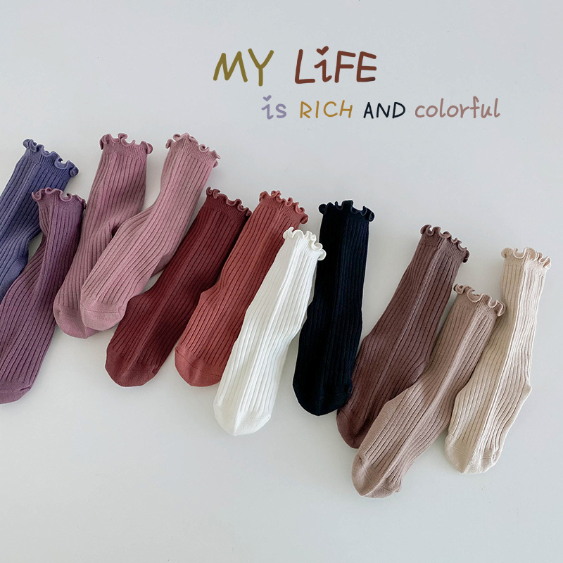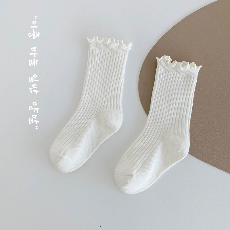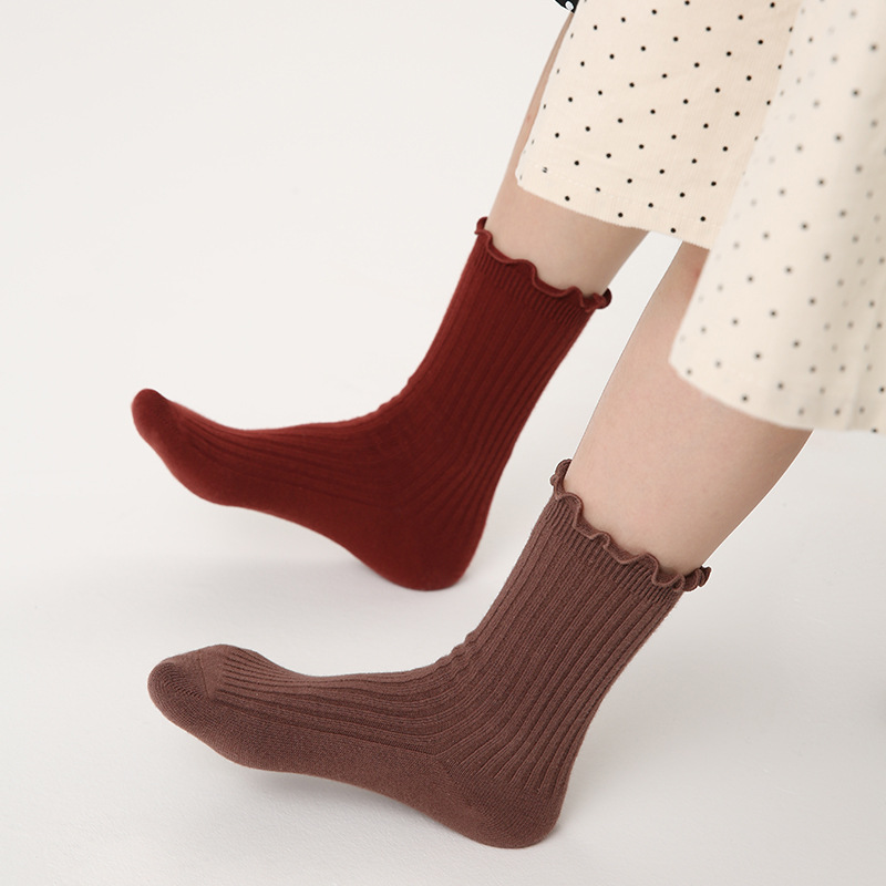 純色木耳邊中筒襪