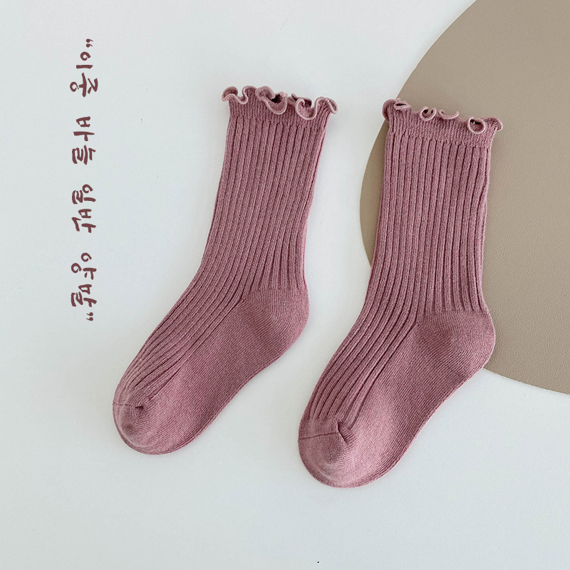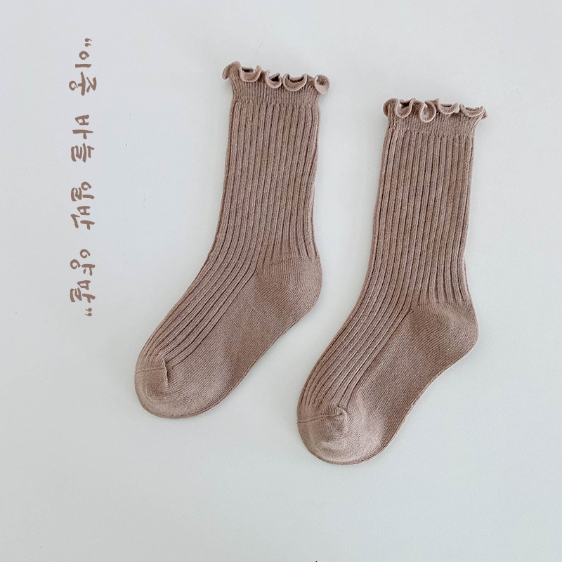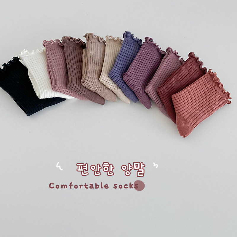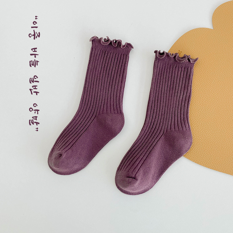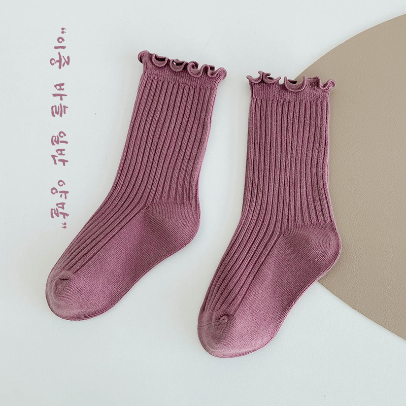 純色木耳邊中筒襪