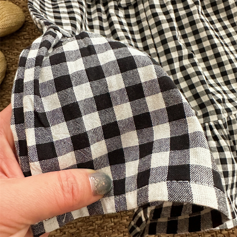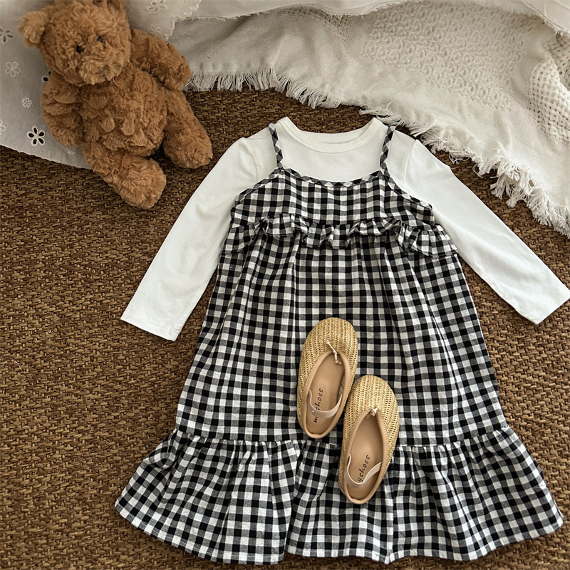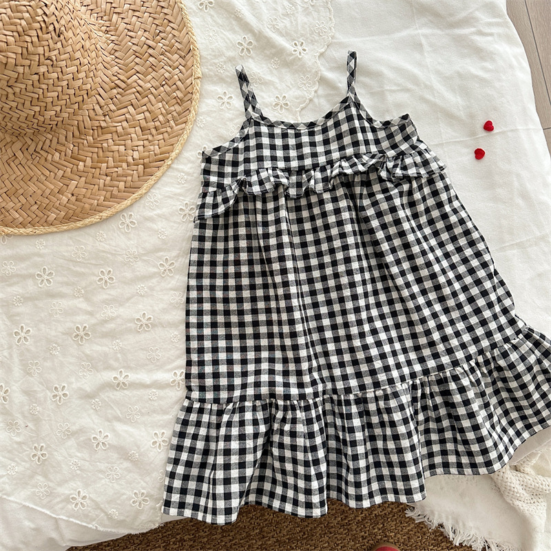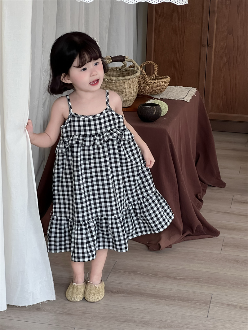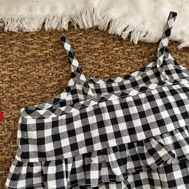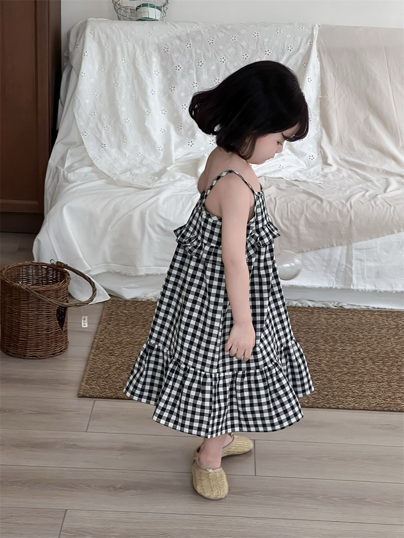 黑白格吊帶魚尾洋裝